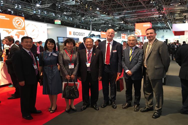 2016 Drupa展会期间,上海包协2016 Drupa展会考察团特地来到博斯特与旭恒展位,受到了博斯特公司第4代传承人 Jean-Pascal Bobst、旭恒公司董事长郑骅的热烈欢迎和热情接待。在郑董的带领下,考察团观看了博斯特、旭恒的参展设备和演示。